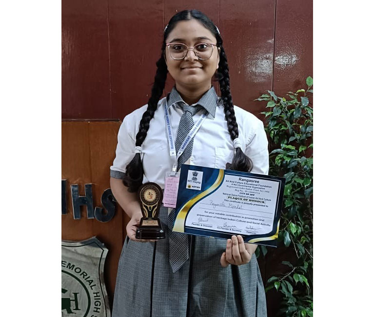 Congratulations to Priyanshi Mondal of Class 7G for securing 1st position in the National Dance Festival of Indian Art and Culture, organised by Rangasree Art and Culture Educational Foundation! 🌟